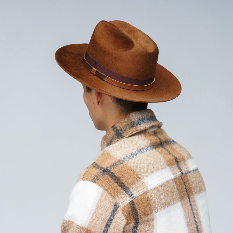 Darwin is made from refined wool treated with our Super Velour finish. It has a 4 1/2" cattleman crown and 3" brim and is trimmed with a tonal grosgrain band with an accent ribbon overlay. Finishing touches include our Bailey signature flooring nail and fine woven sweatband. Shape: Fedora Fabrication: Elite Superfine VelourMaterial: 100% WoolBrim: 3"Lining: LinedCrown: CattlemanUSA Made or Imported: Yes